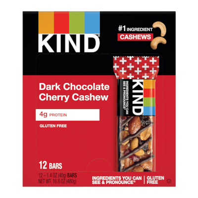KIND PLUS Gluten Free Dark Chocolate Cherry Cashew Nut Bar, 12 Bars/Box (PHW17250)