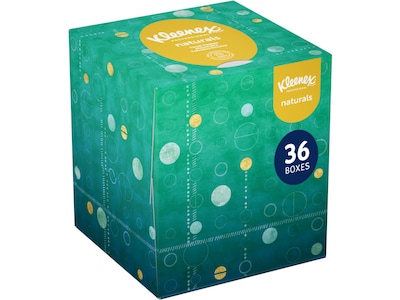 The Kleenex Naturals facial tissue offers excellent performance, premium feel, and essential softness. The tissue is created with a blend of virgin and recycled fiber. Comes in eco-friendly packaging (plastic-free carton with paper baffle). Choose this product to create a good image for your business. For more than 100 years, this brand has delivered the high-quality facial tissues, providing consumers with smart innovations such as ultrasoft feel and a low-alert dispenser (the last 10 tissues are colored light blue instead of white, so you know it's almost time for a new box). By choosing this quality product, you let everyone know that you care.