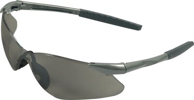 KleenGuard Nemesis™ Safety glasses in smoke mirror color have gunmetal frame and are made of polycarbonate material with scratch-resistant coating. Glasses have free neck cord and no-brow design that extends upward/peripheral vision.