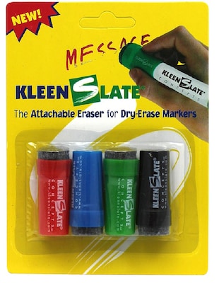 KleenSlate Concepts® Attachable erasers for small barrel in red, blue, green, and black colors are reusable. The erasers fit almost any brand of dry erase marker and is sold as 4 per pack, 6 packs per bundle (24 erasers total).