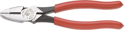 Klein Tools® 9 1/2" Tool steel high-leverage side cutting plier features heavy-duty, oversized and plastic-dipped handle for comfort. Plier has hot-riveted joint that ensures smooth action and no handle wobble.