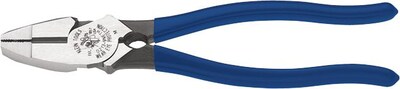 Klein Tools® 9 3/8" Tool steel high-leverage side cutting plier features plastic dipped handle for comfort. Plier has sure-gripping cross-hatched knurled jaws.