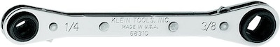 Klein Tools® U.S. Steel ratcheting refrigeration wrench measures 5 1/2" and has polished chrome finish that provides a better grip on worn, rounded fasteners. Wrench is designed for easy access in close parallel lines.
