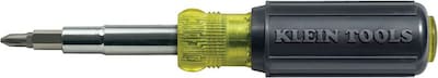 Klein Tools® 11-in-1 Multi bit screwdriver/nut driver features chrome plated steel shank with comfortable cushion grip handle. 11-in-1 Set includes 3 nut drivers, 2 Phillips® tip, 2 Torx® tip, 2 square recess tip and 2 slotted tip screwdrivers.