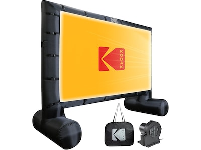 Bring movie magic directly into your own backyard with the Kodak inflatable screen. This weather-resistant behemoth includes its own air pump and inflates within minutes to stand at an impressive 9.3' tall, with a 12' screen. The easy setup and storage process makes this a natural choice for your family gatherings, barbecues, birthday parties, and any other outdoor event. The material is extremely durable and resistant to holes or tears, but repair patches are included in case of any unfortunate accidents. View movies, TV shows, or embarrass the kids with old home videos, all on a 16:9 inflatable wide screen with weighted feet, so it won't blow away (even if the kids want it to).