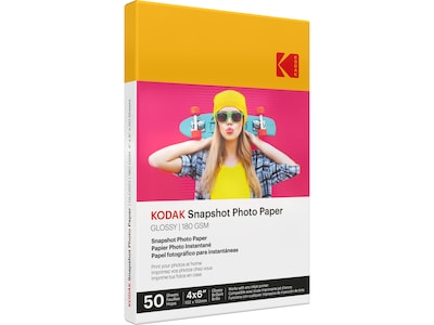 Kodak Snapshot Glossy Photo Paper, 4" x 6", 50 Sheets/Pack (41304)