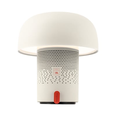Audio plus light and beauty plus functionality masterfully meet in this mushroom table lamp with an integrated Bluetooth speaker. The Kooduu Sensa Play is the perfect example of high-end multifunctionality. Crafted from white powder-coated aluminum, this compact lamp features a frosted diffuser shade and stands at 8.5 inches tall. Equipped with a 2W integrated LED and a full-range dimming lever, it offers customizable brightness with up to 11 hours of battery life. The built-in 10W JBL speaker delivers high-quality audio with a 100Hz-20kHz frequency range and 3 Ohms impedance. With True Wireless Stereo and Bluetooth connectivity, it seamlessly pairs with your devices, and the IP53 rating ensures it can withstand splashes and dust, making it perfect for indoor and outdoor use.