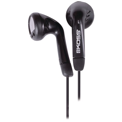 Enjoy your favorite tunes during your workout or training sessions with the Koss KE5 Earbuds. You can connect these white wired earbuds to varied devices, as they are equipped with a 3.5 mm connector. The stereo headphones feature a frequency response range of 60 to 20000 Hz for delivering uniform and undistorted sound quality for a range of notes. The contour frame structure of these headphones will fit your ears securely for comfortable use. These portable earbuds are perfect for on-the-go listening.