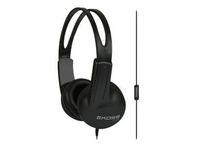 Enjoy listening to all your favorite songs with the Koss® stereo on-ear headphones in black. These headphones ensure that almost all ambient noise is blocked out, so that you can have an immersive experience. They feature a 4' cord with 3.5 mm plug, so you can use them with most multimedia devices. They come with an in-line one-touch microphone that withstands tangles and offers hands-free operation. Lightweight construction offers easy portability and adjustable headband provides superior comfort.