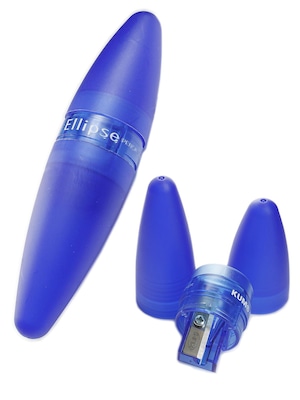 This Kum Ellipse Ice pencil sharpener features a conical shape, with a magnesium inner sharpener, and a screw-on top. Available in 3 assorted transparent colors.