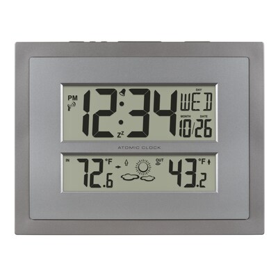 The La Crosse Technology elegant digital clock offers daylight saving time resets, 12/24-hour atomic time, and date settings. Wireless outdoor temperature sensor transmits within 330ft range of clock and provides accurate 12-hour future forecast. Set to any of the seven time zone selections and automatically adjusts (optional) for daylight saving time. Its soft, contemporary design makes it suitable for office or the home, displaying time, temperatures, and calendar.