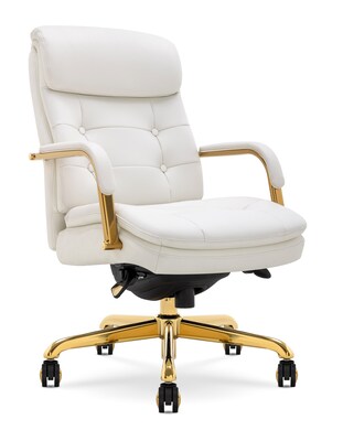 La-Z-Boy Sonata Ergonomic Bonded Leather Swivel Executive Chair, White and Gold (CCHR10014A)