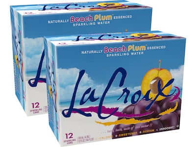 Enjoy a fizzy beverage while you work with this 24-pack of LaCroix 12-ounce cans of Beach Plum sparkling water.
