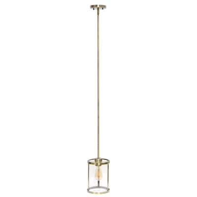 Lalia Home 1-Light 9.25" Farmhouse Hanging Cylindrical Clear Glass LED Pendant Fixture, Antique Brass (LHP-3002-AB)