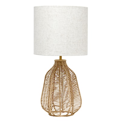 Lalia Home 21" Vintage Rattan Wicker Style Paper Rope Bedside Table Lamp with Fabric Shade, Natural (LHT-4017-NA)