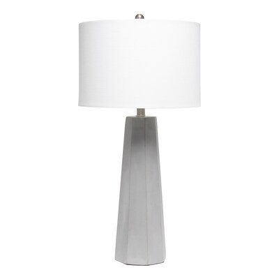 Standing tall at 30.5", this lamp is sure to make a statement in any room in your home! The gray concrete base is multifaceted with clean lines and is accented with brushed nickel touches and a white fabric drum shade. Perfect for living room, bedroom, office, or anywhere you need to add a touch of industrial style!