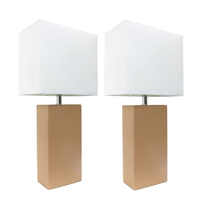 Lalia Home Lexington 21" 2-Pack Leather Base Modern Bedside Table Lamp Set, White Fabric Shade, Beige (LHT-3008-BG-2PK)