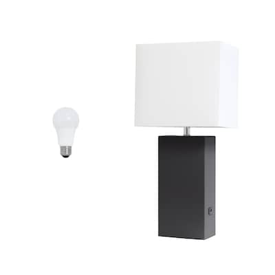 Lalia Home Lexington 21" Modern Bedside Table Lamp, White Rectangular Fabric Shade, Feit LED Bulb, Black (LHT-3012-BK-LB)