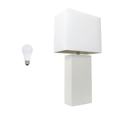 Lalia Home Lexington 21" Modern Bedside Table Lamp, White Rectangular Fabric Shade, Feit LED Bulb, White (LHT-3008-WH-LB)