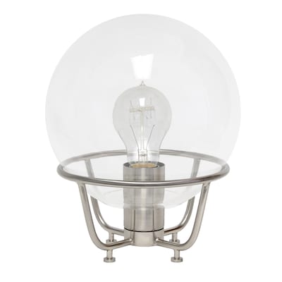 Illuminate your room in style with this modern table lamp! The clear globe glass shade is accented by a polished brushed nickel metal base for the perfect industrial look! At 10 inches high, it's the perfect solution to freshen up your nightstand, end table or foyer.