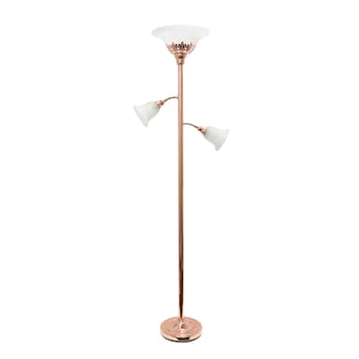 Lalia Home Torchiere Floor Lamp with 2 Reading Lights and Scalloped Glass Shades, Rose Gold (LHF-3002-RG)