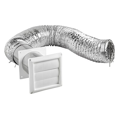 - Includes 4 in. white plastic louvered vent with 11 in. tail pipe, 4 in. white plastic trim plate, 4 in. x 8 ft. UL 2158A laminated transition duct, and 4 in. galvanized tension clamps