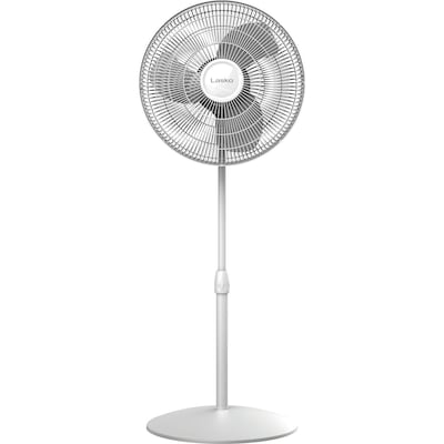The Lasko S16201 16 In. Oscillating Stand Fan, in white, adds a wonderful breeze to any room in your home. With a broad 90-degree oscillation sweep this fan is sure to supply any room with the air flow you want from 3 quiet speeds. The easy-grip rotary control makes it easy to adjust to your desired speed. You can also adjust the height and the tilt of the fan head. Assembly is easy and requires NO tools! Safety features include a patented safety fuse plug.