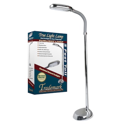 Bring natural sunlight to your home or office with the Lavish Home Sunlight Floor Lamp. Ideal for reading, computer use, and detailed tasks, this modern 5-foot floor lamp simulates natural outdoor light, offering vivid colors, crisp contrast, sharp detail, and reduced eyestrain. Its adjustable gooseneck lets you focus the light where you need it most. It comes with an energy-efficient compact fluorescent bulb that lasts for up to 5,000 hours.