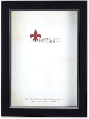 The Lawrence Frames Wood Shadow Box 795057 5" x 7" Picture Frame can be placed on a desk, shelf or a wall, and features a black border that highlights its overall look.