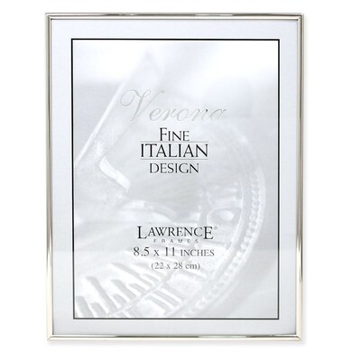 The Lawrence Frames 650081 Verona Collection 8.5" x 11" Steel Picture Frame can be placed on a desk, shelf or a wall, and features a silver finish that highlights the overall look. Relive your cherished memories when you have the Lawrence Frames Rectangular Picture Frame that sports a stylish design and has a sturdy construction. Constructed of heavy-gauge steel with an attractive silver finish, this frame offers a contemporary lo ok to the decor. This picture frame allows you to showcase your prized memories efficiently, with its sleek, single-frame design.