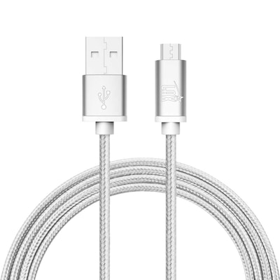 LAX Gadgets Durable Braided Micro USB Cable for Samsung, Android, LG (10ft), Silver