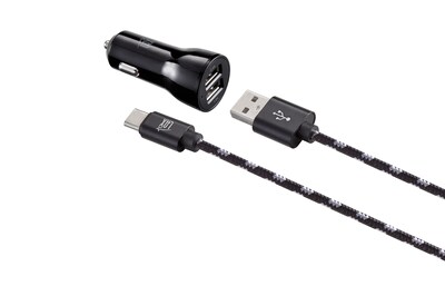 LAX Gadgets Type C 6ft Charger with Car Charger Black (USBCCAR6FT-BLK)