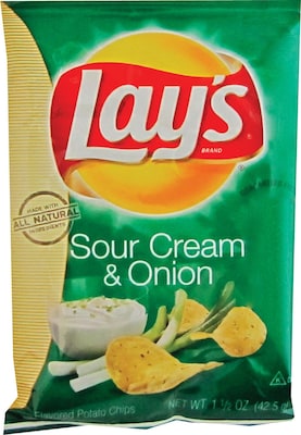 Order Lay's Sour Cream & Onion Potato Chips, 1.5 oz., 64 Bags/Pack (FRI44361) today at Quill.com and get fast shipping. Stack coupons to get free gifts & extra discounts!