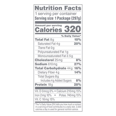 - Ingredients: tomatoes, blanched macaroni product, tomato puree, part skim mozzarella cheese, dry curd cottage cheese, pork, water, beef, onions, 2% or less of garlic puree, sugar, modified cornstarch, soy protein concentrate (with caramel color), basil, salt, seasoning, modified food starch, spices, potassium chloride, skim milk, flavors, dehydrated garlic, xanthan gum, dehydrated onions, natural flavor