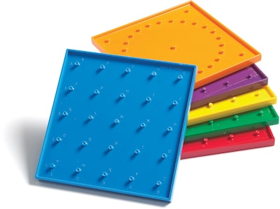 Learning Advantage™ 6" Double sided geoboard for kindergarten and upgrades has a 24 pin circular array on one side and a 5 x 5 pin grid on the other. Geoboard is provided with 6 colors and a pack of 120 elastic bands.