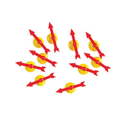 Make your own spinner dice or invent your own games! Suction spinners work great on whiteboards to design with write-on/wipe-off markers. Customize your own classroom activities! Set of 10 versatile suction spinners will stick to most smooth surfaces and work well on horizontal and vertical bases. Spinner arrows measure 3.94" each.