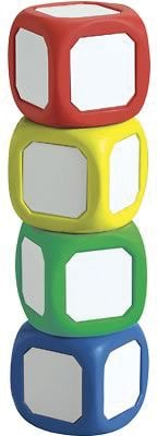 A versatile manipulative to create your own fraction, operation, and other specialty dice. Perfect for classroom activities! Each small die measures 2" square and features a metal dry erase surface on all six sides. New and improved surface eliminates ghosting. Set contains one each of red, yellow, green, and blue small dice.NOTE: Dice may have a protective plastic coating on the white metal. If so, please remove before using.