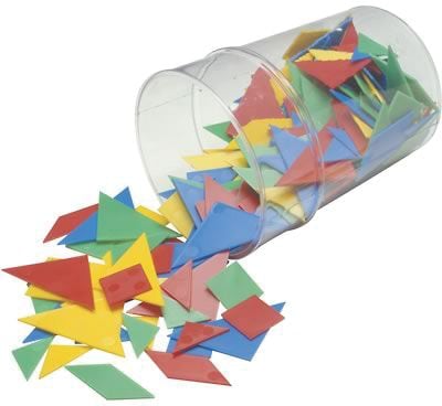 Tangrams classroom pack are brightly colored plastic geometric puzzles explore shape, size, comparison, spatial reasoning, patterns and designs.