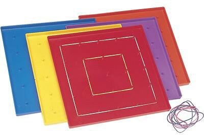 - Sturdy plastic 7" square geoboards feature a 5x5" grid with raised edges to protect knobbed pegs