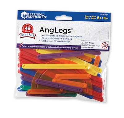 Learning Resources® AngLegs smart pack is perfect for small group or individual classroom instruction and is recommended for children above 5 yrs. Learning Resources® AngLegs smart pack features a resealable polybag and has an activity guide. Pack includes 48 snap-together pieces in 6 different lengths with a protractor.