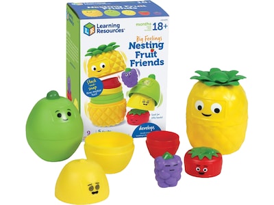 This Learning Resources feelings-filled fruit fiesta helps kids build essential skills. Kids build essential social-emotional learning and fine motor skills as they reveal these five friendly nesting fruits. Double-sided fruit faces introduce 10 unique emotions for kids to learn opposites as they compare and contrast. Textured fruit pieces also encourage sensory play.