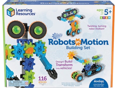These robots really twist, turn, and move. Kids can design and build the STEM robots of their dreams with Learning Resources Gears! Gears! Gears! Robots in Motion. This 110-piece robotics building set inspired by the Gears! Gears! Gears! series includes all-new special components for designing and building robots, cars, and machines that move and transform. Kids can follow along with the included STEM Activity Guide, or use their imaginations to devise open-ended builds of their own. With 116 pieces, they can add rolling treads, spinning eyes, and more. Every time they build a new robo-creation, kids also boost their early engineering, critical thinking, and other essential STEM skills. All pieces included in Learning Resources Gears! Gears! Gears! Robots in Motion work with all other Gears! building sets, so the possibilities are as fun as they are limitless.