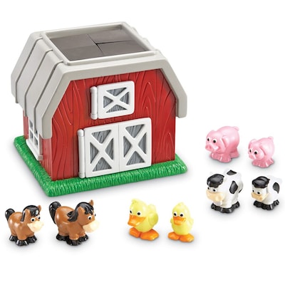 Learning Resources® Hide-n-go moo is recommended for children above 2 yrs and has a vinyl flaps over the opening for added safety. Learning Resources® Hide-n-go moo helps students to learn attributes of each figurine such as size, shape and color. Moo includes barn, 2 cows, 2 ducks, 2 horses, 2 pigs and is great for tactile awareness.