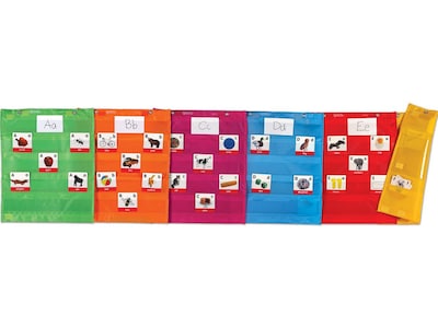 Add a splash of color to your organizational schemes. Stray papers, pens, and supplies find new, neat homes within the revamped Learning Resources magnetic pocket chart squares. Inspired by the Learning Resources original multiuse organizer, this set of six magnetic pocket charts features a vibrant updated color scheme inspired by the rainbow itself: you'll get squares in red, blue, green, purple, orange, and yellow. Each square's durable plastic pockets are sturdy enough to hold all kinds of materials. Use them as a classroom organizer to keep preschool classroom supplies neat, or stow stray papers found around the office. The squares also come with built-in magnets and hook-and-loop fasteners, so they're easy to hang just about anywhere. They're also modular: you can use your magnetic pocket chart squares individually or as one large chart. Use the magnets to hang one on the side of a filing cabinet, or transform your whiteboard into an organizer station with all six at once. This teacher helper makes a great preschool classroom decoration.