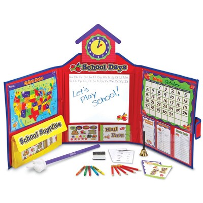 Learning Resources® School pretend & play set with U.S. map has a convenient tri-fold board to practice writing and has everything needed for the ultimate pretend classroom.
