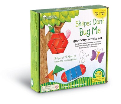 Learning Resources® Shapes Don't Bug Me™ Geometry activity set helps to engage children in composing 2-D shapes and is recommended for children above 5 yrs.