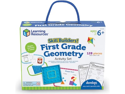 Play your way to elementary-ready geometry skills with these fun, quick activities. This Learning Resources set's hands-on activities help kids learn and retain lessons in shape attributes, 2D and 3D, early fractions, and other first-grade math skills through fun, active play. Plus, the built-in carrying case lets you take the learning on the go.