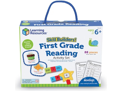 Play your way to classroom-ready reading skills! Set your kids on the path to elementary school success with the fun, quick reading activities found in the first grade learning materials in Skill Builders! 1st Grade Reading activity set from Learning Resources. This 88-piece set comes with all the hands-on activities and first grade learning games needed to help kids learn and retain essential language and writing skills; learn high-frequency words with 25 double-sided flashcards, build word blends with 25 Reading Rods, master early phonics concepts through hands-on activities, and more! Designed with all kinds of spelling, language, and reading skills in mind, the first grade learning materials in Skill Builders! 1st Grade offer versatile ways to learn; whether you're looking for additions to homeschool curriculum, first grade learning games, or teacher supplies for classroom instruction, this set has the fun, active play you need! This set can even function as inspiration for self-correcting ESL exercises! Skill Builders! 1st Grade Reading also comes with a built-in carrying case, so you can take your first grade learning games on the go! We're Learning Resources, and we've been helping parents and teachers build generations of amazing kids since 1984. From ABCs and 123s to fine motor and STEM skills, our educational toys offer kids the building blocks they need to succeed in school and develop a lifelong love of learning. Discover countless ways to learn through play with our award-winning products, including Toy of the Year winners Tumble Trax, Botley the Coding Robot, and Coding Critters™.