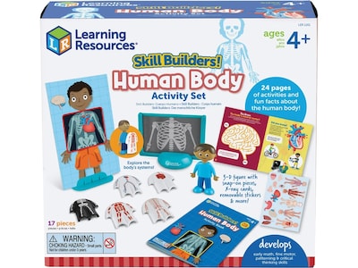 With this Learning Resources Skill Builders! human body activity set, the science is happening inside all of us! Kids learn about the inner workings of the human body with the help of age-appropriate activities and 3D pieces for enhanced hands-on learning. Learn the names, functions, and locations of organs, systems, and more! Includes full-color write-and-wipe guide with worksheets.