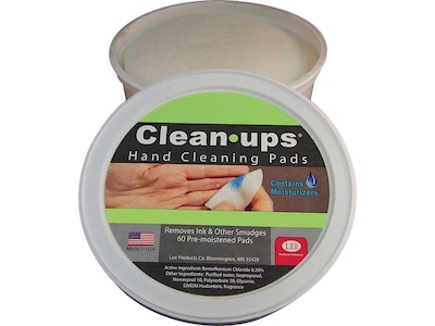 Wipe down desktops, machines, and various surfaces with these hand-cleaning pads. Premoistened with a formula containing isopropyl alcohol, these Lee Products Clean-Ups hand-cleaning pads help eliminate ink, toner, and bacteria from hands or suitable hard surfaces.